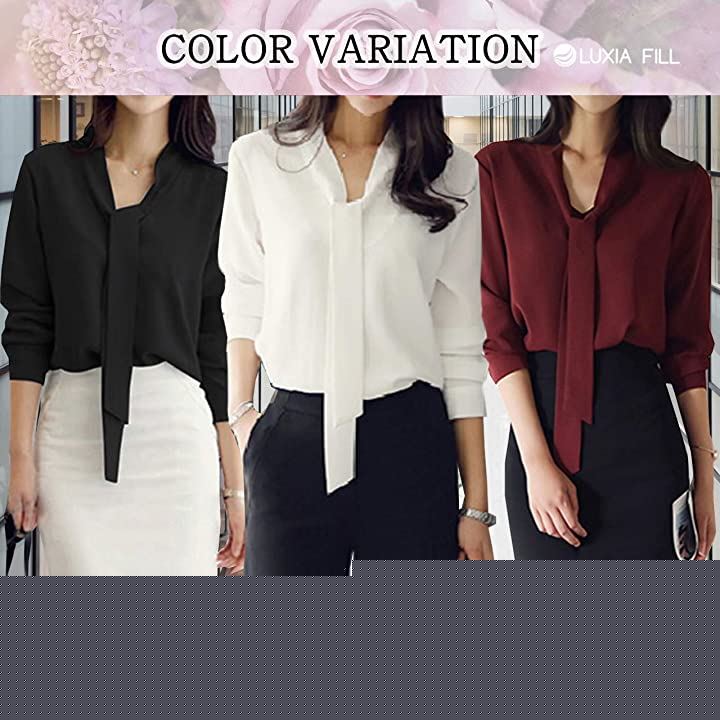 ・上品なデザインと滑らかな肌触りの生地が気持ち良いボウタイブラウスです。
