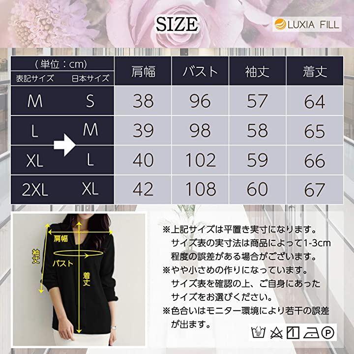 「サイズ」(肩幅/バスト/袖丈/着丈)M(S):38/96/57/64L(M):39/98/58/65XL(L):40/102/59/662XL(XL):42/108/60/67単位:cm*上記サイズは平置き実寸になります。