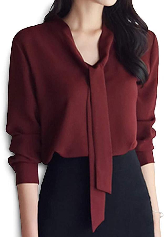 ・上品なデザインと滑らかな肌触りの生地が気持ち良いボウタイブラウスです。