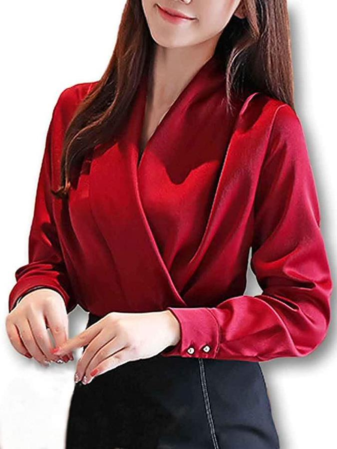 光沢のあるサテン生地でエレガントな装いにぴったりのドレープブラウスのご紹介です。