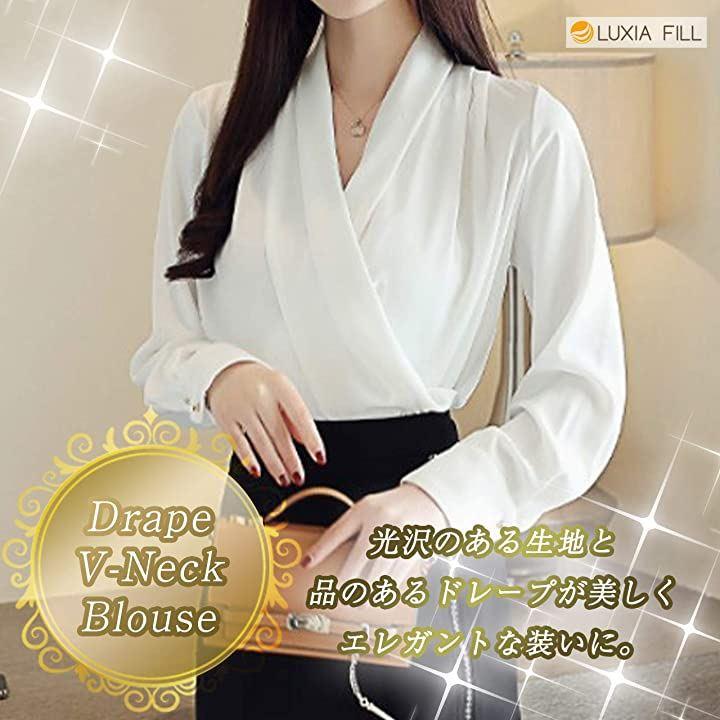 Vネックとドレープのラインが美しく、ビジネスシーンでも、デートやパーティーシーンなどでも活躍し、高級感のあるコーディネートに仕上がります。