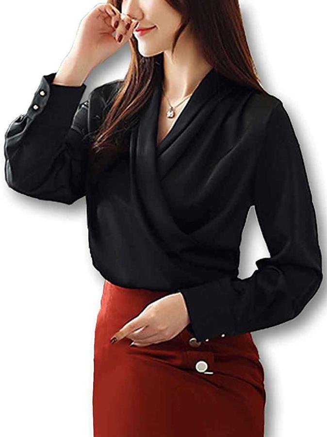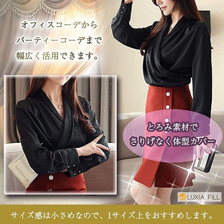 ・光沢のあるサテン生地でエレガントな装いにぴったりのドレープブラウスのご紹介です。