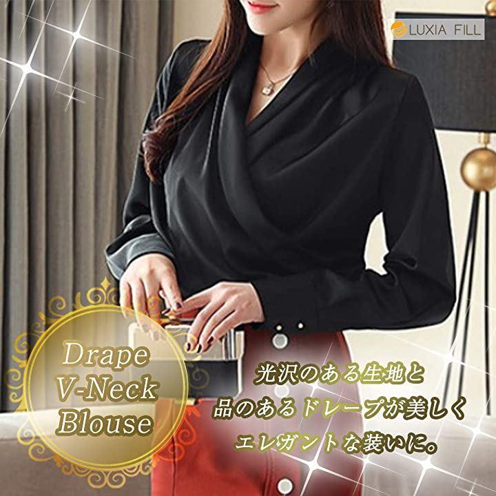 Vネックとドレープのラインが美しく、ビジネスシーンでも、デートやパーティーシーンなどでも活躍し、高級感のあるコーディネートに仕上がります。