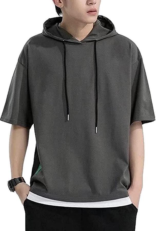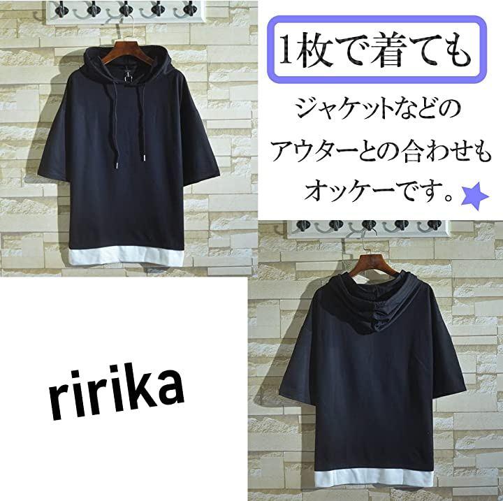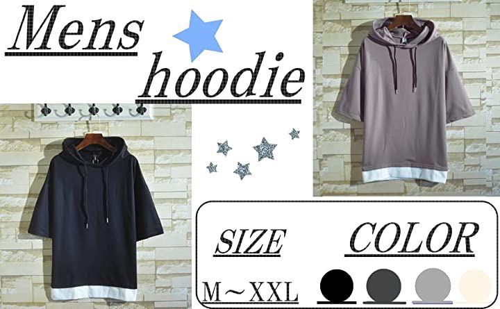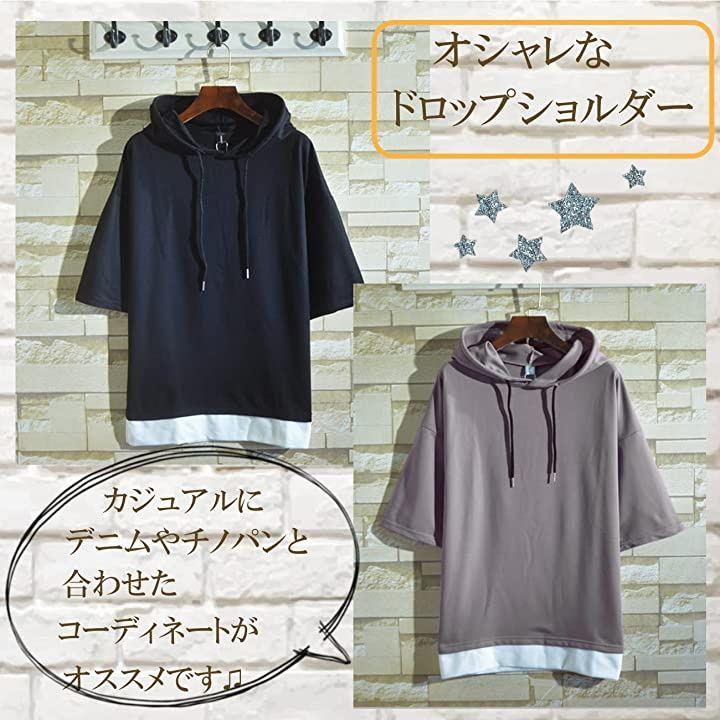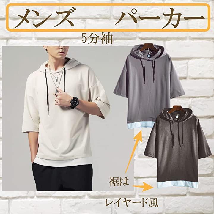 ・オシャレなドロップショルダーの5分袖パーカーは、裾は重ね着風のレイヤードスタイルになっているので、ラフなオフスタイルも1枚で決まります。