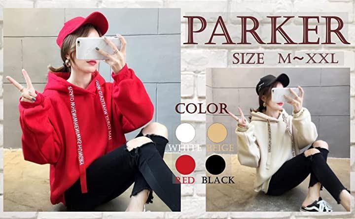 ・カラーはシンプルで使いやすいブラック、ホワイト、ベージュとレッドの4色展開なので、お好きなカラーを選んで下さいね♫色やサイズ違いでお友達とお揃いや親子コーデも楽しんでいただけます・ 裏起毛ですが、春秋冬とロングシーズンで使いまわせるので1枚はもっておきたい便利なアイテムです♫ 年代も幅広い方に着ていただきたいカジュアルアイテムです♫