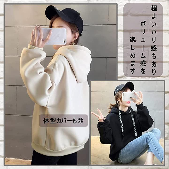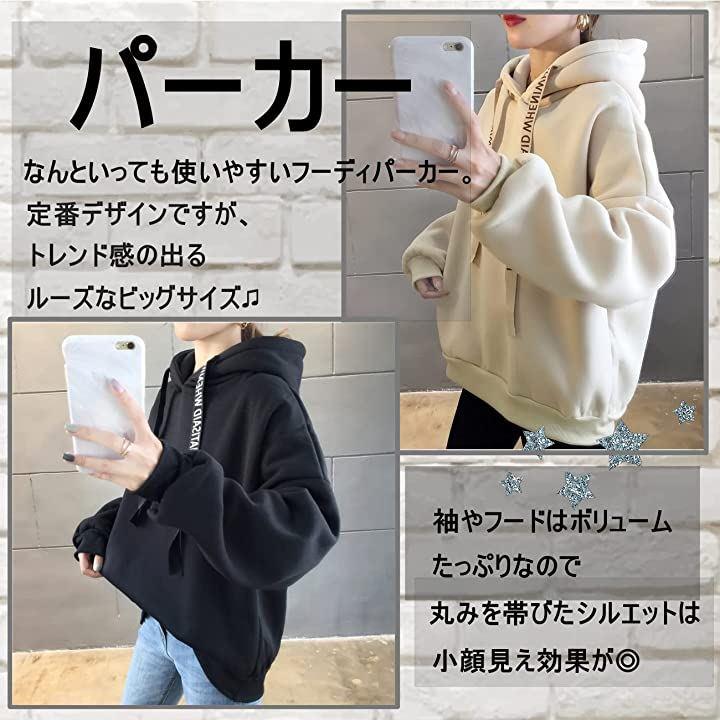 定番デザインですが、トレンド感の出るルーズなビッグサイズになっていて、リボンのロゴもオシャレ可愛く決まるパーカーです♫ 全体的にゆったりとしたボックスシルエットで、締め付け感もないので着心地も良いです。