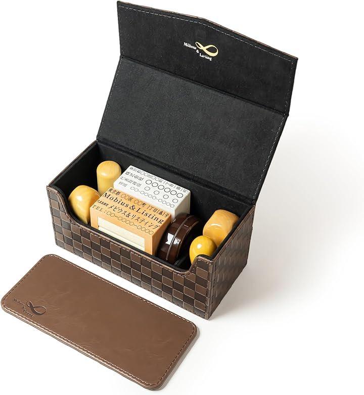 契約・商談・取引などのビジネスシーンにスタイリッシュな印箱 ・各種印鑑・ゴム印・ビジネス用スタンプ・朱肉まで収納できます。