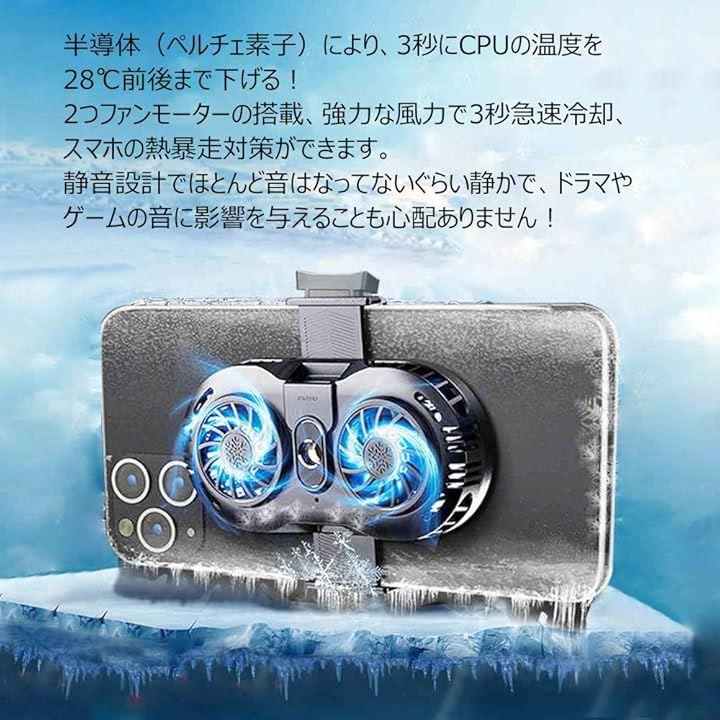 ・(1)「 過熱防止・急速冷却 」スマートフォンで自撮り写真や生放送、動画撮影、SNS、FPS系のゲームをするので熱暴走対策用の冷却ファンです。