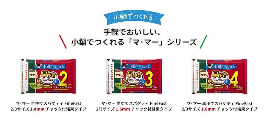 小鍋で茹でる事が出来、食べ応えも充分な2/3サイズの早ゆでスパゲティです。結束タイプで軽量も不要で、チャック付きにすることにより保存も簡単になりました。小鍋で調理できるため、湯切りの作業や、洗い物も簡単になり、準備から片付けまでのトータル時間も削減できる早ゆでスパゲティです。