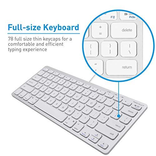 【コンパクトなサイズ】:コンパクトサイズのキーボードは、従来のキーボードの約3分の2くらいのサイズ。【幅広い互換性 】:AppleとWindows PCの両方動作可能。対応OS は、Mac OS X v10.6以降、Windows 7/8/10以上 利用可能なUSBポートを備えたデスクトップまたはノートブックパソコンに対応。【便利なショートカットキー】:13個のAppleショートカットキー(切り取り/コピー/貼り付け、iTunesコントロール、音量の上げ下げなど)およびWindows PC互換のマルチメディアショートカットで生産性を向上。【安定的な接続】:140 cmのUSBケーブルは、信号損失のない安定した接続を保証し、バッテリの交換不要、ドライバのインストールする必要がなく、有線接続による信頼性の高い接続。【優れた静音性】:静音性に優れたシザースイッチを使用したフルサイズのチクレット形78キーはスムーズなタイピング触覚を実現。