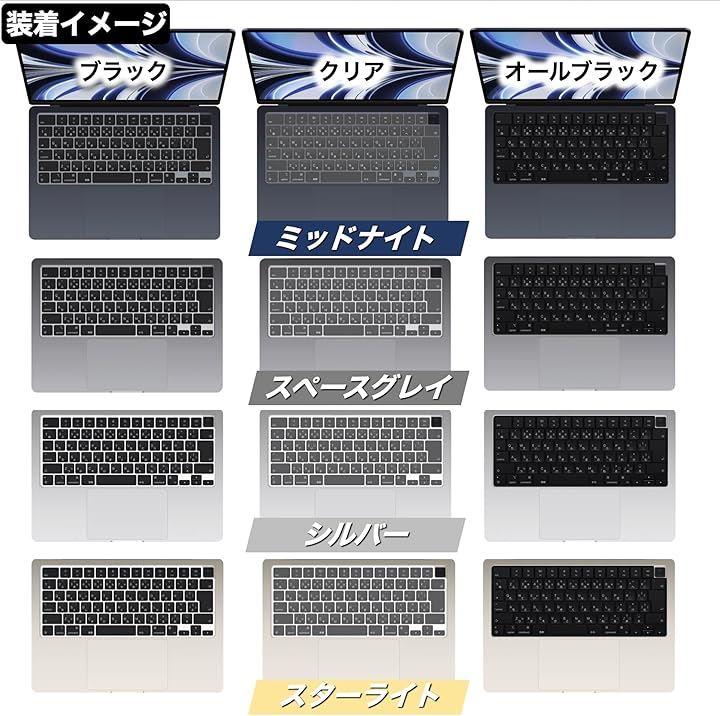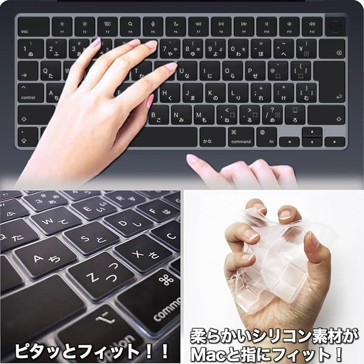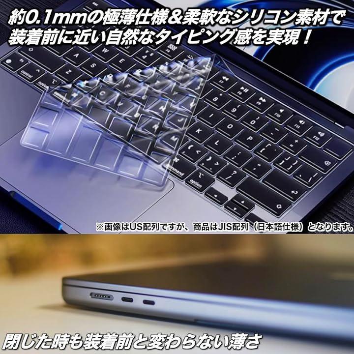 「M2 M3チップモデル対応」2022年、2023年モデルのMacbook Air 13.6、Pro 14/16インチおよびAir 15/13インチのJIS配列仕様にフィットする専用キーボードカバー。