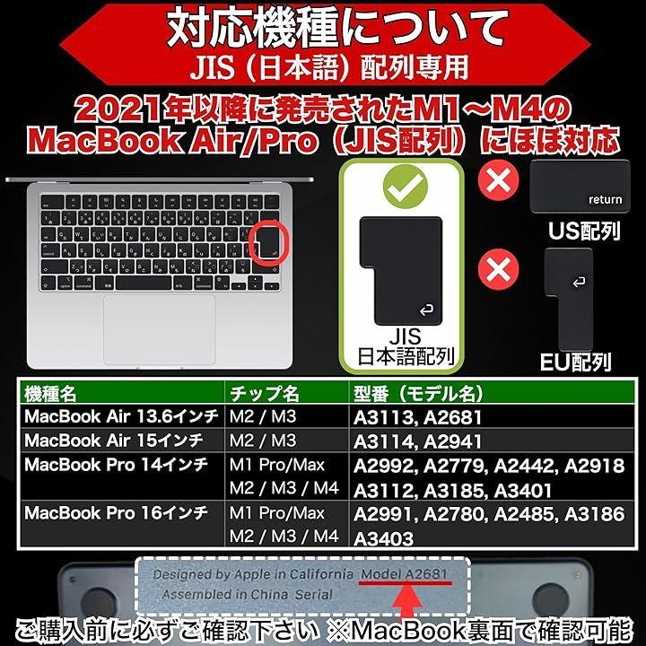 「対応モデル」Macbook Air 13.6、Pro 14/16インチ、Air 15/13 ( JIS配列) ◾️ A2991 / A2992 / A2779 / A2780 / A2442 / A2485 / A2941 / A2681