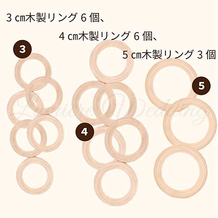 ・素材:3mm麻紐、12mm木製ビーズ約50個、15cmウッドスティック2本、5cm木製リング3個、4cm木製リング6個、3cm木製リング6個、29mmx12mm木製ビーズ イメージ:画像を参照下さい。