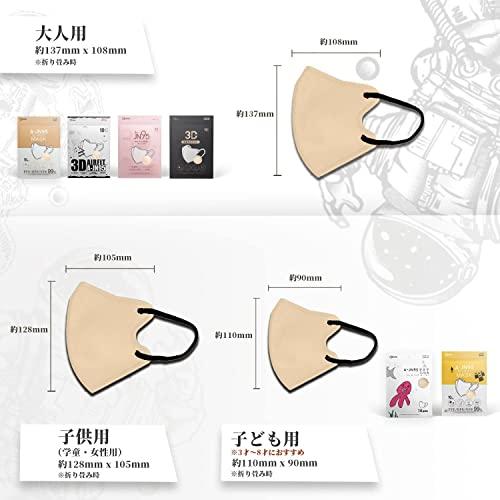 【規格/サイズ】:日本製 大人用サイズは約14.5×10.2cm(折り畳み時)、学童及び小さめサイズは約13×10.2cm(折り畳み時)、子供サイズは(約)11.0cm×9.0cm (折り畳み時)です。【日本製 3Dマスク】マスクは人間工学に基づいた3Dエンジニアリングデザインを採用し、あらゆる顔の形に適しています。独自3D形状によって、くちもとの空間を広く保ち、息がしやすく快適な状態をキープできるように工夫しました※本商品は個包装と非個包装の商品をランダム発送になります。 ※モニター発色の具合により色合いが異なる場合がございます。ご了承ください。 ※商品の仕様・パッケージデザインが予告なく変更する場合がございます。ご了承ください。【快適保証】肌に優しく心地よい装着感があり、シルクのような、なめらかな肌触りでつけ心地快適、通気性に優れています。 立体構造で鼻や口の息苦しさを解消します 、伸縮性のある耳紐で耳への負担を軽減します 。【立体型マスク】人体工学に基づいた3D立体構造設計で、マスクの内側の口元も空間があるため、「小顔効果がある」と、デザイン性だけでなく、「メガネが曇りにくい」「呼吸がしやすい」など機能性も大好評いただいている安心安全にこだわったマスクです。【快適保証】肌に優しく心地よい装着感があり、シルクのような、なめらかな肌触りでつけ心地快適、通気性に優れています。 立体構造で鼻や口の息苦しさを解消します 、伸縮性のある耳紐で耳への負担を軽減します 。