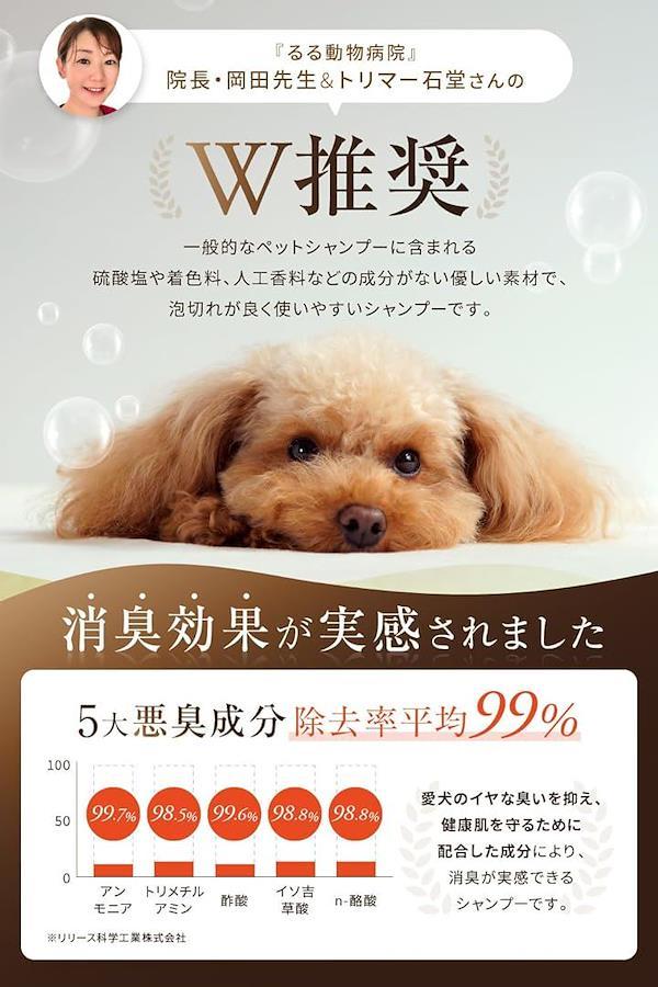 「自然由来の厳選成分」「12種類の天然素材由来成分配合」で、愛犬の被毛と皮膚を自然の力で優しく洗浄。