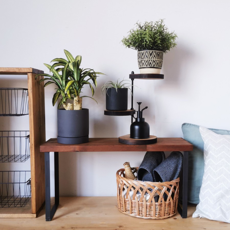 観葉植物はもちろん、見失いやすい鍵や印鑑・メガネなどの置き場所としてご家族の共有スペースでもご活用ください。キッチン周りの調味料置きや、寝室・子供部屋でお気に入りの雑貨や人形など、シンプルなデザインなので様々な場所でお使いいただけます。新築お祝いやお引越し祝いのプレゼントにもおススメです。
