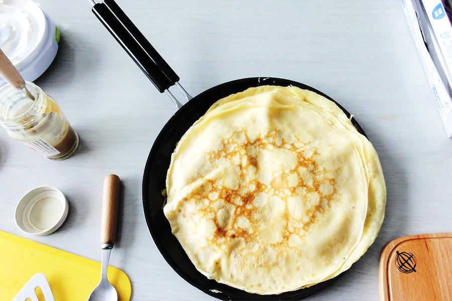 ファイバーライン加工によりフライパンに生地がくっつきにくく、返しやすい