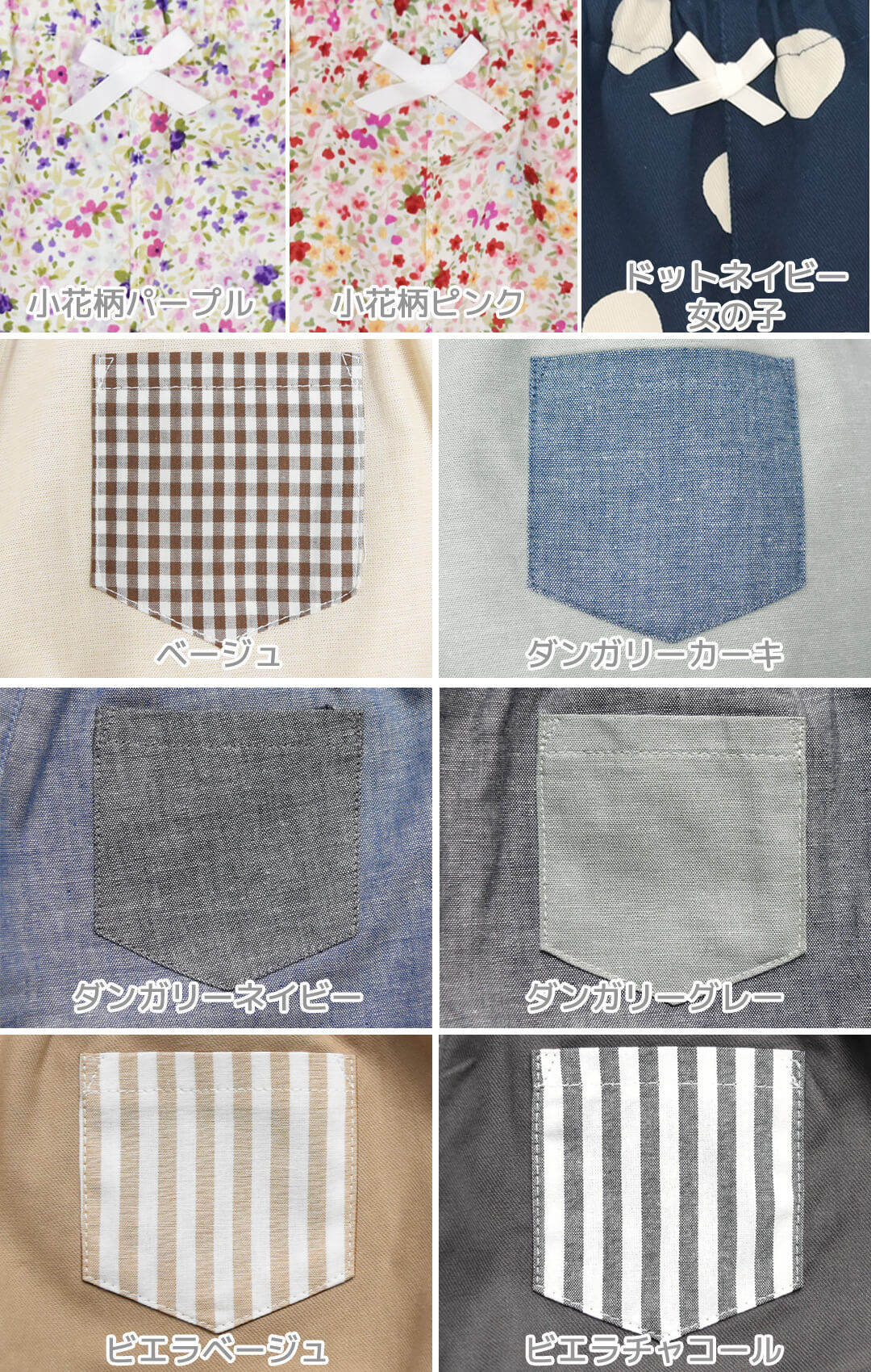 カラー(柄) | ダンガリーベージュ / ダンガリーピンク / ダンガリーイエロー / ダンガリーオレンジ /