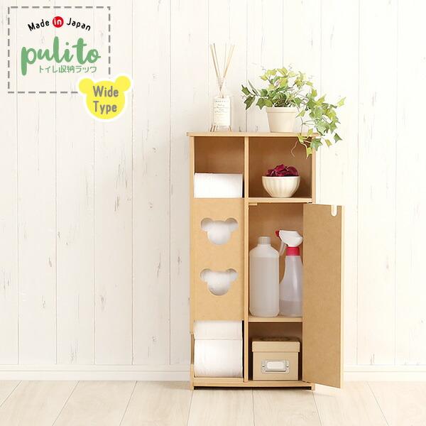 Made in Japan Toilet Storage Rack [pulito] Wide Type Natural