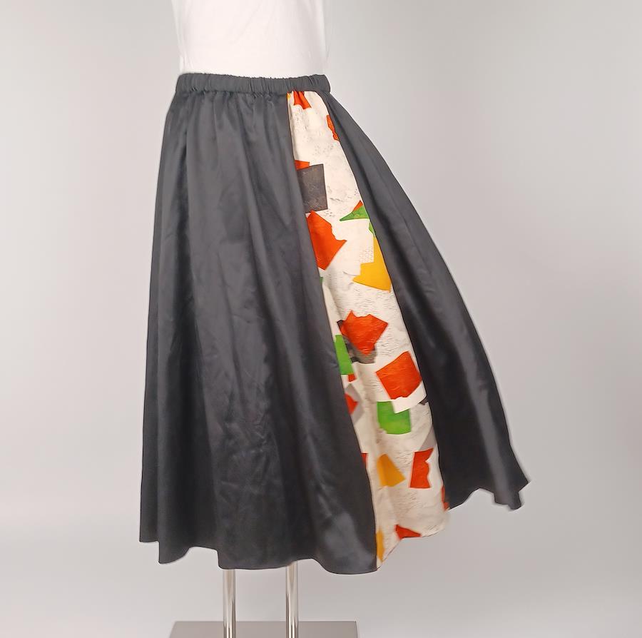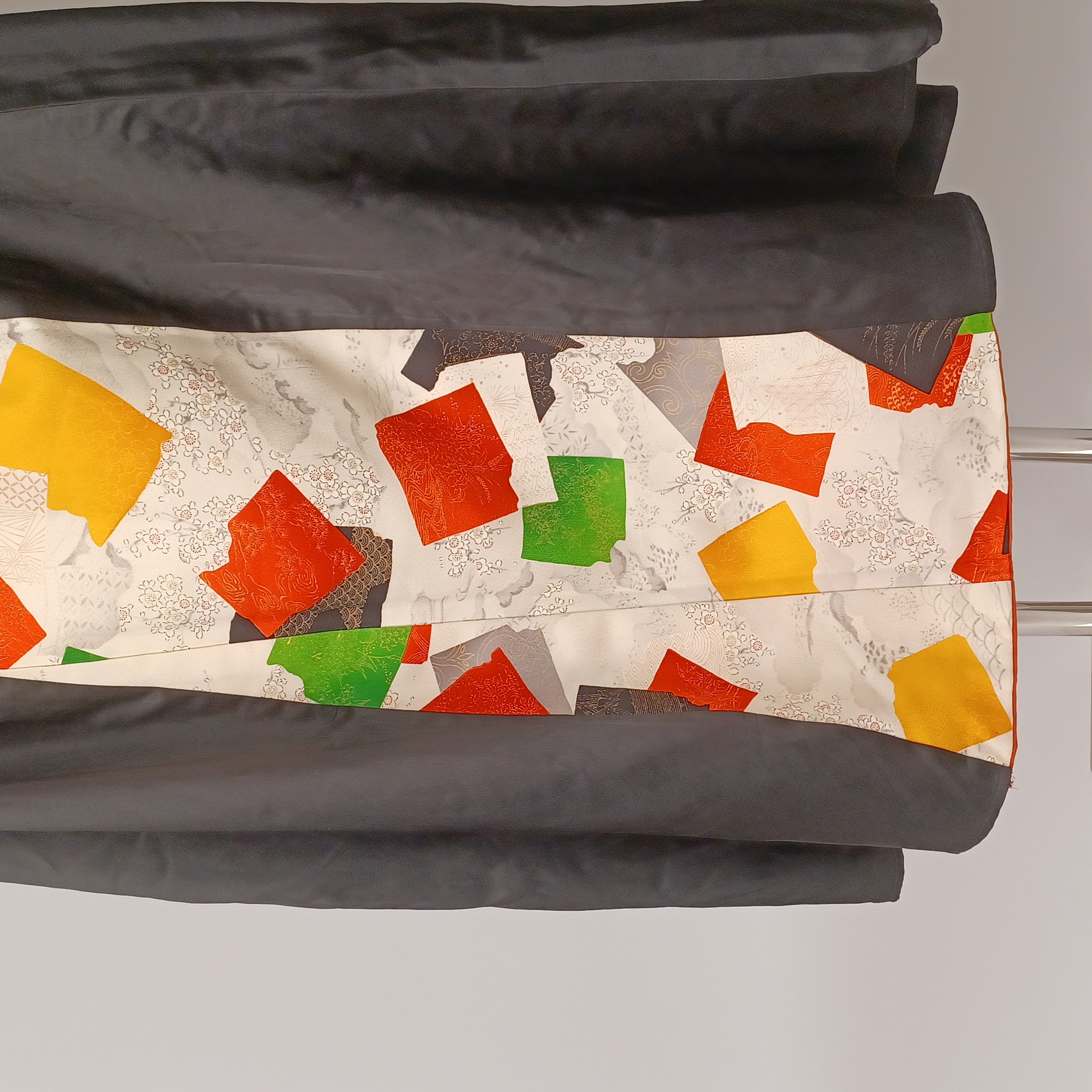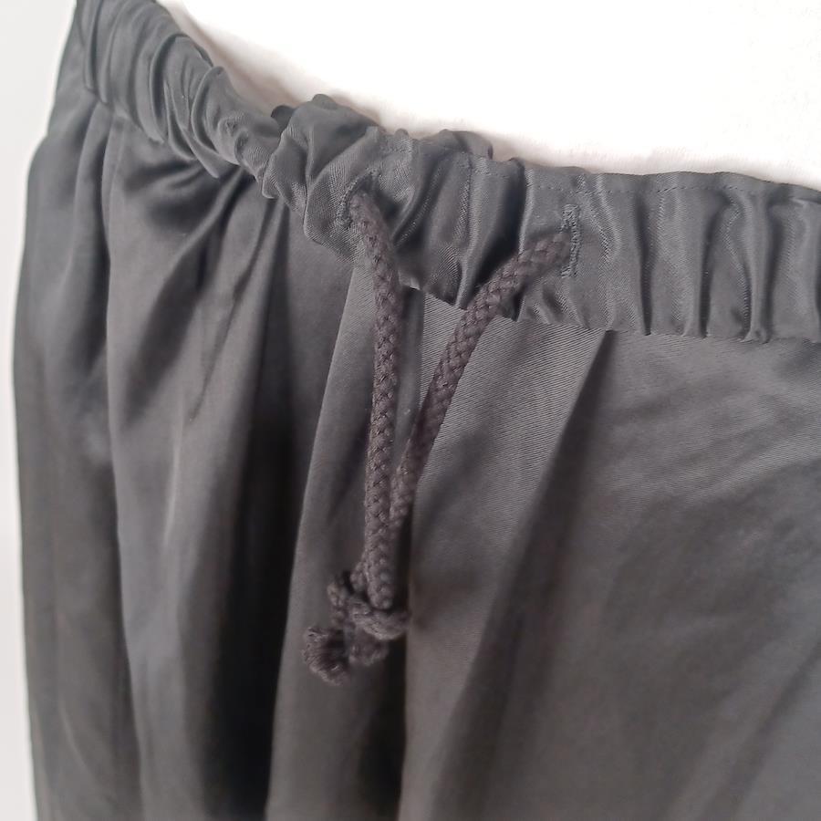 This skirt is handmade from a vintage Japanese silk kimono.As this is a vintage material and a prototype, there may be some wrinkles and stains.The waist portion has elastic ties for easy on/off and accommodates a wide range of waist sizes.A cord is also included inside the waist that can be tightened
