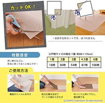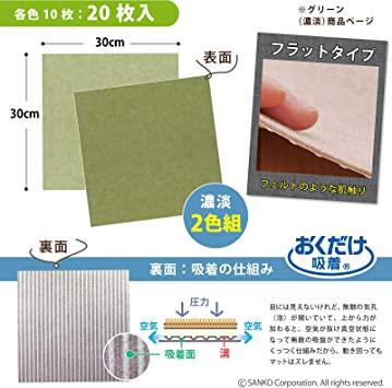 通常1-5営業日で発送:【おくだけ吸着】 床に置くだけでズレない特殊加工【1.2畳分】 サイズ : 20枚組〈約1.8㎡〉(2色組、各10枚)30×30cm(厚み3mm)、重量:44g(1枚)【お掃除ラクラク】 掃除機を掛けてもズレない吸着力【何度も貼ってはがせる】 簡単に外せて、何度でも敷き直し可能【敷く場所は自由自在】 リビング、ダイニング、キッチン、ペットマット、廊下、玄関などいろんな場所で使用可能【はっ水加工】 撥水加工だから、汚れもサッと一拭き【日本製】 洗濯機OK(繰り返し使えます)、床暖房対応(推奨:低温)、ハサミでカット可能