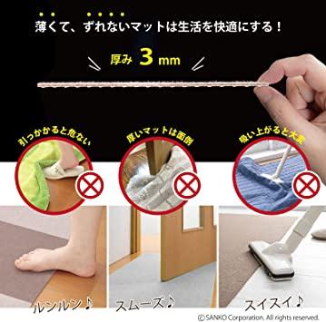 商品紹介・おくだけで取り付け、取り外し簡単。・ペットを飼っている場合、ペットの爪で床を傷つけるのを防ぎます。・ハサミで手軽にカットできます。カットしてもほつれません。・汚れたところだけはずしてお手軽に洗濯機で丸洗いできます。・生地が薄いので、つまずきにくく、扉の開閉の妨げにもなりません。・掃除機をかけても、裏面の吸着効果で、めくれ上がることがなく、簡単にお掃除できます。