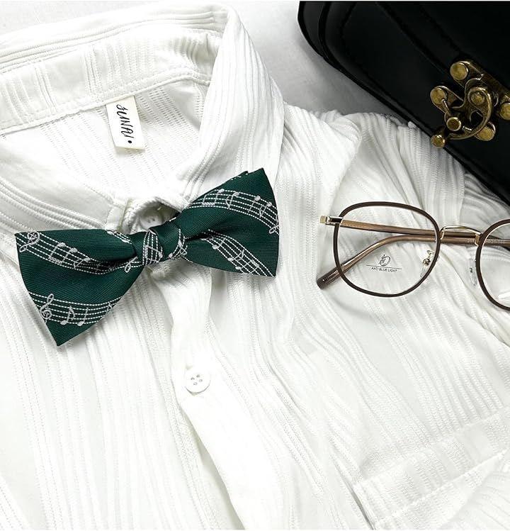 音楽好きにぴったり。おしゃれな楽譜柄の蝶ネクタイ 音楽を愛するあなたへ 音楽のエッセンスをさりげなく取り入れたデザインで、ミュージシャンや音楽愛好家の方におすすめのアイテムです。
