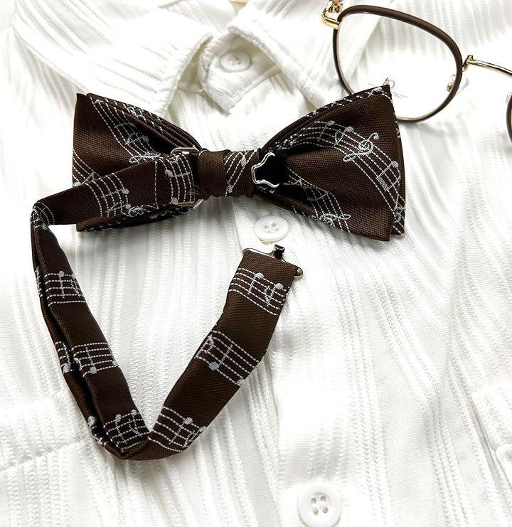 音楽好きにぴったり。おしゃれな楽譜柄の蝶ネクタイ 音楽を愛するあなたへ 音楽のエッセンスをさりげなく取り入れたデザインで、ミュージシャンや音楽愛好家の方におすすめのアイテムです。