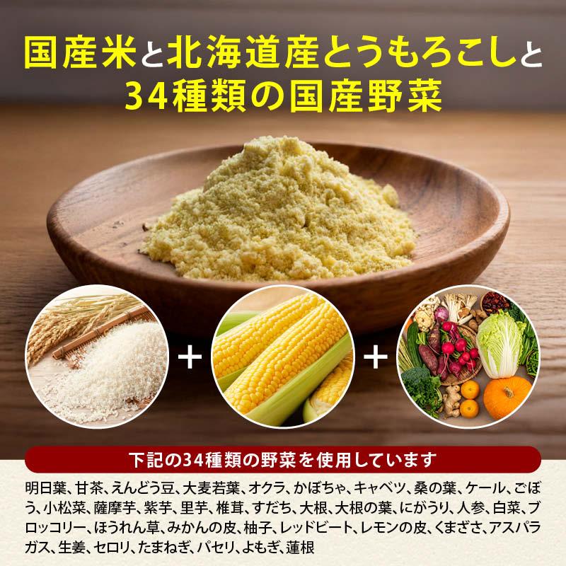【原料2:北海道産とうもろこし×国産34種のお野菜】