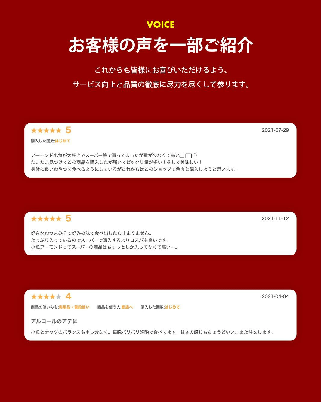 香ばしくローストされたアーモンドと、少し甘く味付けされたごまイワシがバランス良く組み合わさり、大人から子どもまで食べやすい味わいに仕上がっています。