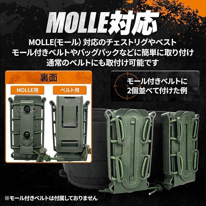 「MOLLEとベルトに対応」MOLLE(モール)付きのチェストリグやプレキャリでも普通のベルトにも取付け可能です