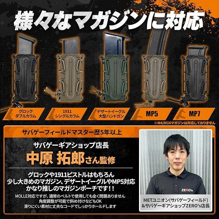 「ほとんどの大きさのガスハンドガンマガジンに対応」1911、グロックはもちろんデザートイーグルの大型ハンドガンもOK。