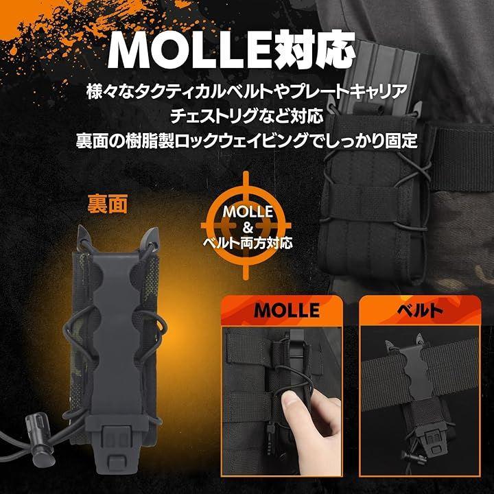 「MOLLEとベルトに対応」MOLLE(モール)付きのチェストリグやプレキャリでも普通のベルトにも取付け可能です