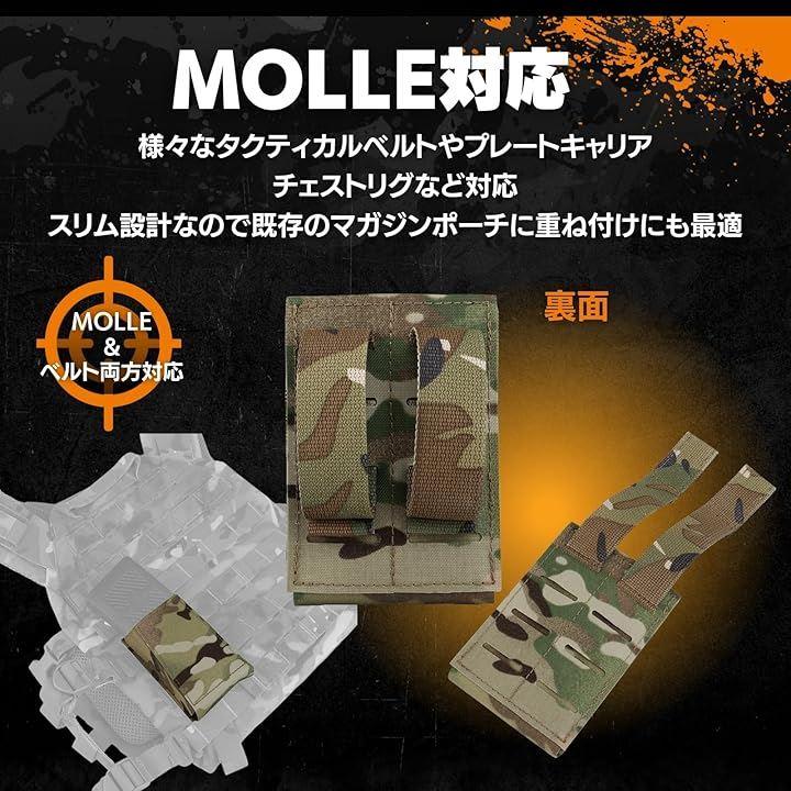 「MOLLEとベルトに対応」MOLLE(モール)付きのチェストリグやプレキャリでも普通のベルトにも取付け可能です