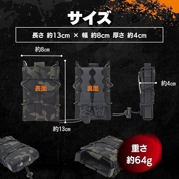「多用途」マガジンの他に、トランシーバーやライトなどタクティカルツールやスマホなども収納可能です。