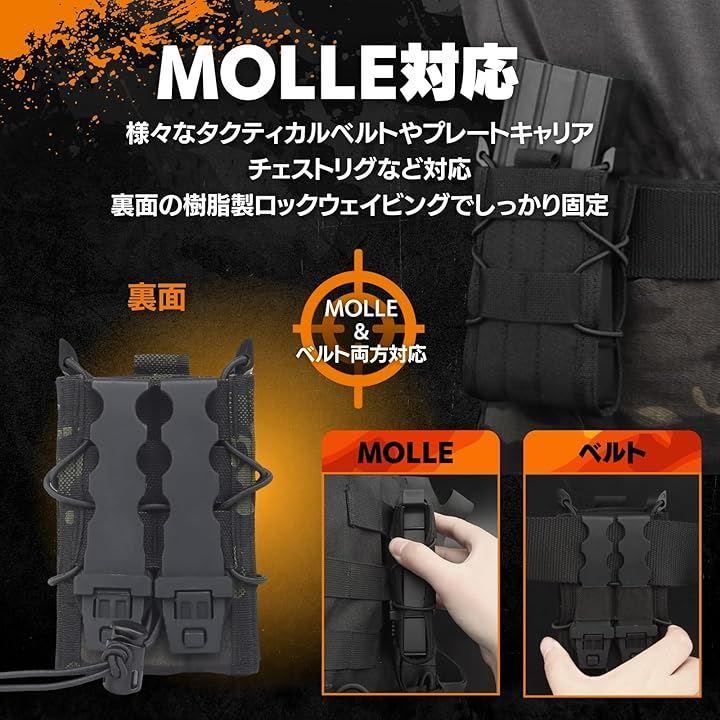 「MOLLEとベルトに対応」MOLLE(モール)付きのチェストリグやプレキャリでも普通のベルトにも取付け可能です