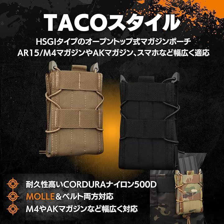 Magazine pouch, TACO style, compatible with M4, AK, MOLLE, belt, both, airsoft, CORDURA, genuine nylon