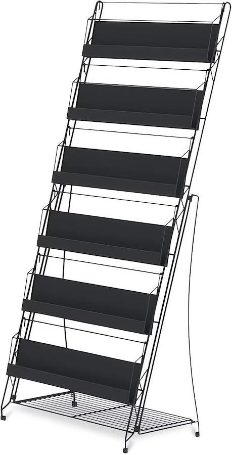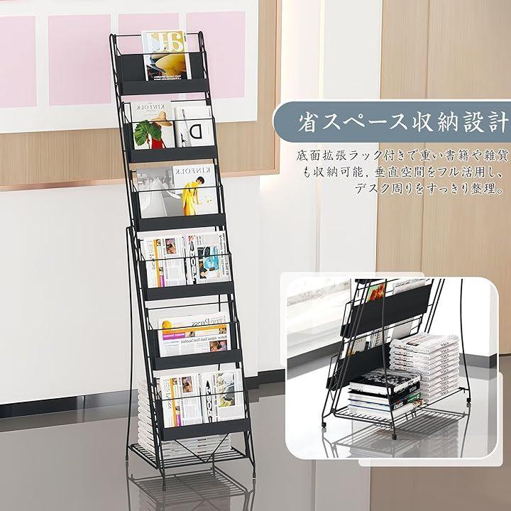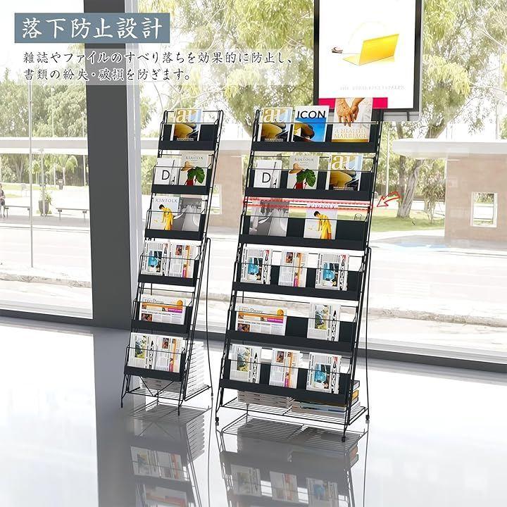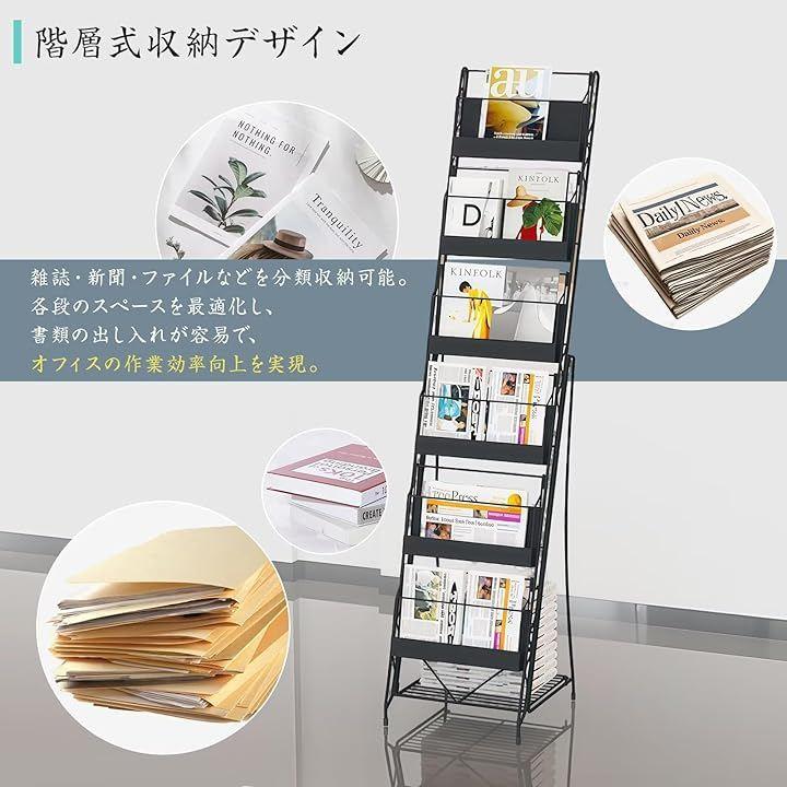 各段に落下防止ガードと全面囲い式収納層を装備し、雑誌・新聞・ファイルを分類収納。