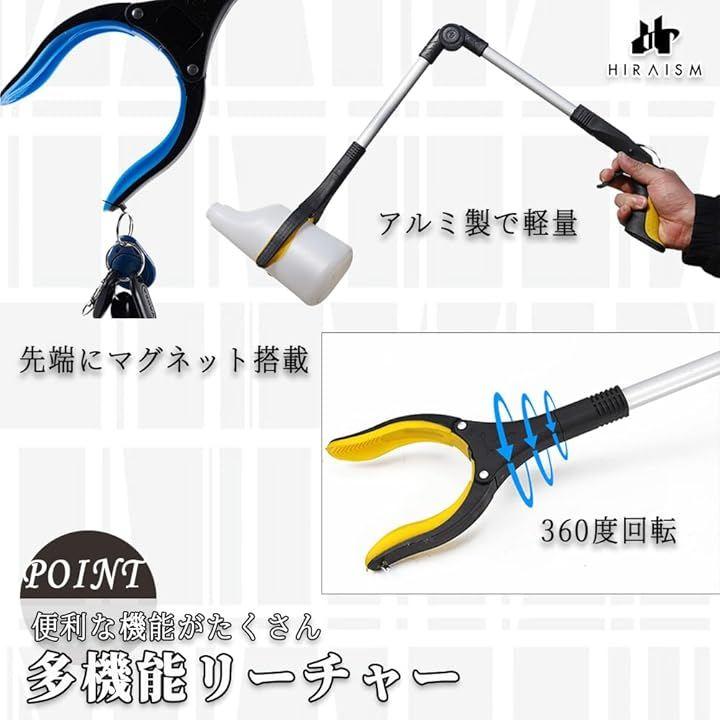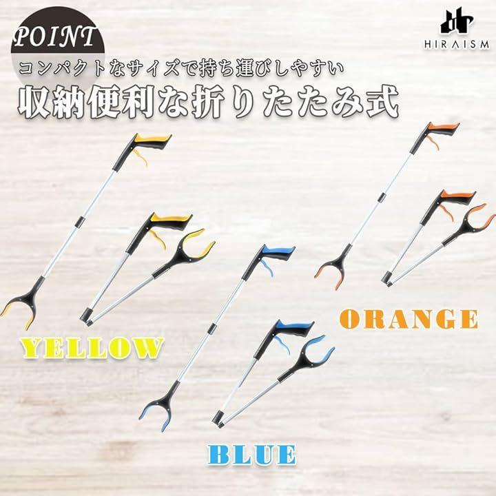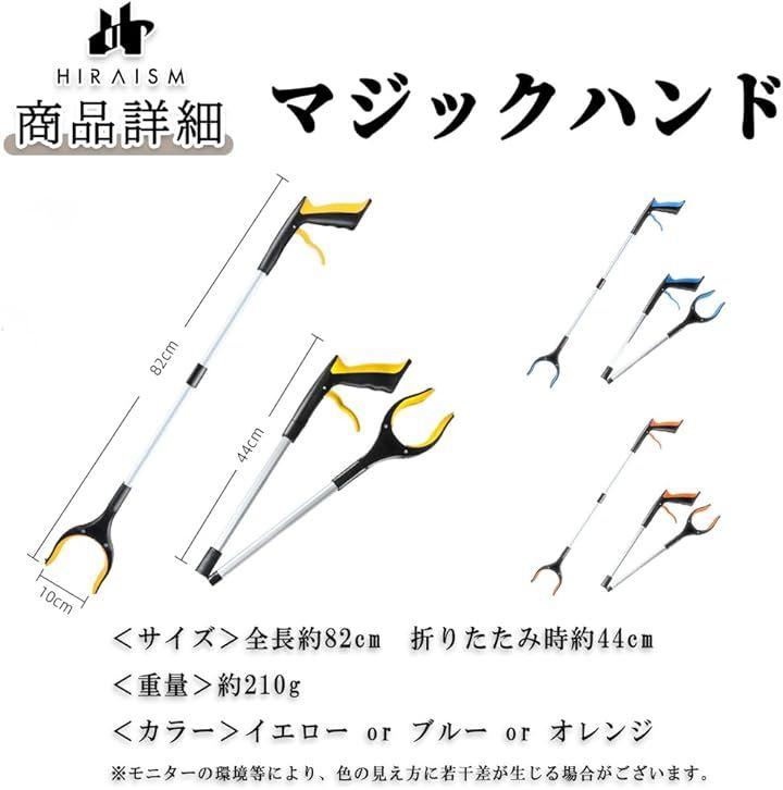 「商品内容」マジックハンド <サイズ>全長約82cm 折りたたみ時約44cm <重量>約210g <カラー>イエロー or ブルー or オレンジ