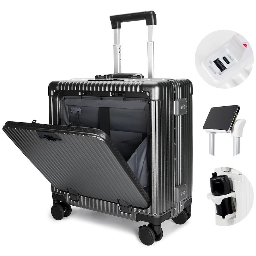 【新型前開きスーツケース登場、充電ポートも付いている、便利性が高め!】スーツケースにて画期的なデザイン、前ポッケトスーツケースが誕生。読みたい雑誌でも、仕事で必要なパソコンでも、早く手に取りたいものがたっぷり入られます。更に、スーツケースにて2種類充電ポートが(USB+Type-C)搭載しており、各機種に対応でき、旅先に充電切れの心配がありません!モバイルバッテリーを出し必要もありません、歩いながらスマホを充電することができます。*注意:スーツケースにモバイルバッテリーが用意しておりません。ご自分で用意します。【多機能スーツケース、旅を楽しむ!】お客様のご要望に応じてキャスターを改良しました、皆様待望久しいストッパーを付いていました!スーツケースの自走を止め、?れる 電車にも安定に立ち。スーツケースはカップホルダーを付く、カップだけなく、折りたたみ傘やコーヒーカップも置きます。キャリバー上部にはスマホホルダーが付いているので、フライトの待ち時間を楽しむ、外出先でもリラックスできます。スーツケース(SサイズとMサイズ)の側面にはフックが付いています、旅先のお土産が掛け、両手を解放します。【強度に優れてPC素材を採用、耐久性抜群スーツケース】スーツケースは軟鋼板と呼ばれるPC素材を使用しています。PC素材の耐圧縮性、弾力性に優れており、スーツケースは高いところから落ちるても、重いもので押せられても、元の状態を維持することができます。スーツケースは3層の複合材で構成されており、強度をより高めています、スーツケースの中の大切な荷物を保護し、長期間使用できるようにします。 また、キャリアケースの表面は丁寧に塗装され、高級感のある光沢に仕上がっています。【世界標準のTSAロックを採用したスーツケース】弊社のスーツケースには世界標準のTSAロックが装着されており、ロックしたまま荷物を預けることができ、税関を早めに通ります。*注意:注意:鍵穴は税関検査用のみのため、スーツケースには鍵は含まれていません。【4色、3サイズをご用意しまし】お客様のご要望にお応えして、ブラック、ホワイト、グリーン、グレー、4色を用意しました。 また、3サイズがあります、XSサイズ:41×22×46cm(1~3泊 約41L)、Sサイズ:35×23×56.5cm(3~5泊 約45L)、Mサイズ:40×25×66cm(5-7泊 約67L)、手作業による測定のため、サイズは1~2cmの誤差がありますので、ご了承ください。注意:航空会社によって規定が異なるため、スーツケースが機内に持ち込めるかどうかは、航空会社にご確認ください。