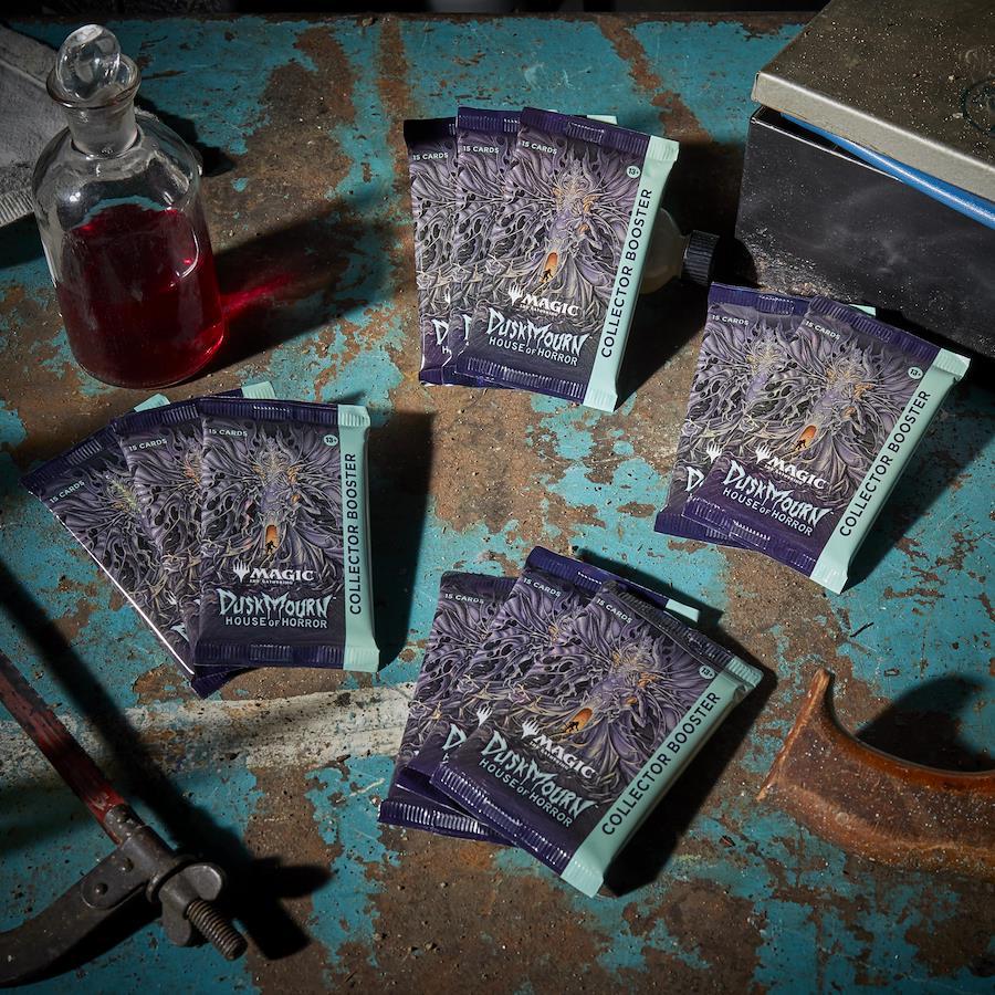 友人をスタイリッシュに驚かせよう――コレクター・ブースターには、レア以上のカードが5枚と特別仕様のカードが合計5枚封入されています。『ダスクモーン:戦慄の館』の希少なものを集めましょう。
