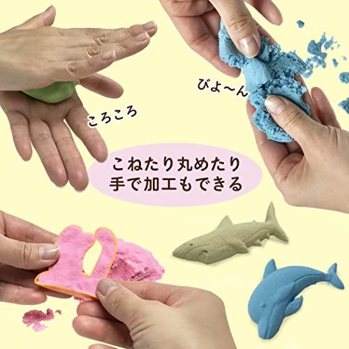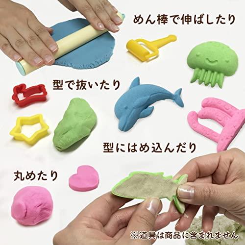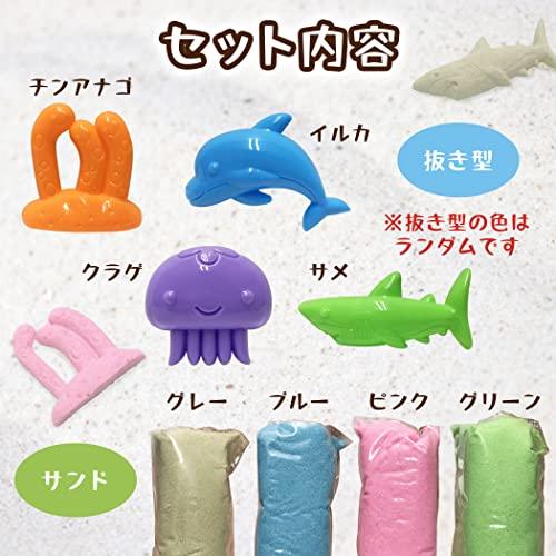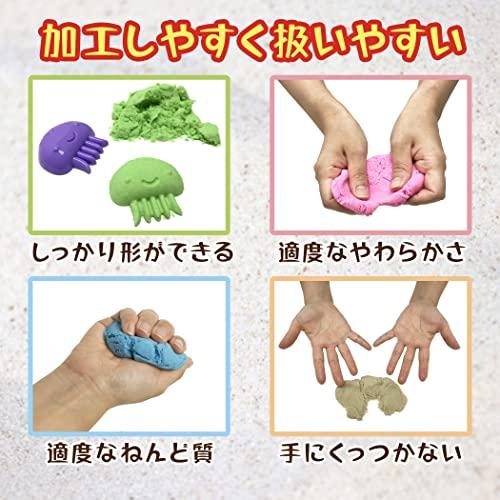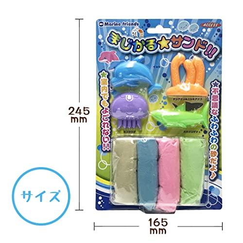 【新感触サンド!】砂のような?ねんどのような?新感覚?おうちで遊べるカラフルサンドセットです。砂遊びは外でするものと思いがちですがこのマジカルサンドは室内で手を汚さず遊べる「魔法の砂」です。 【室内で砂遊び】砂遊びは外でするものなので悪天候の時は遊べません。しかしこのマジカルサンドは室内でも使えるので遊びたいときに遊べ、いつでも自由な表現力や想像力、集中力を育んでくれます。 【周りを汚しにくい】砂遊びは手や服が汚れます。このマジカルサンドはその心配はありません!周りを汚しにくい素材なので手も服も汚さず手軽に砂遊びができます。また簡単に片付けができます。 【カラフル4色セット、海の生き物の型付き!】カラフルな4色の砂とイルカ、サメ、クラゲ、チンアナゴの可愛い型付き。型を使って海の生き物を作ったり、自由自在に好きな物を作ることもできます。どなたでもこの不思議な新感触の砂にきっとハマるでしょう? 【詳細】 サイズ (パッケージ含む): 約W165mm×D30mm×H245mm / 重さ:約235g