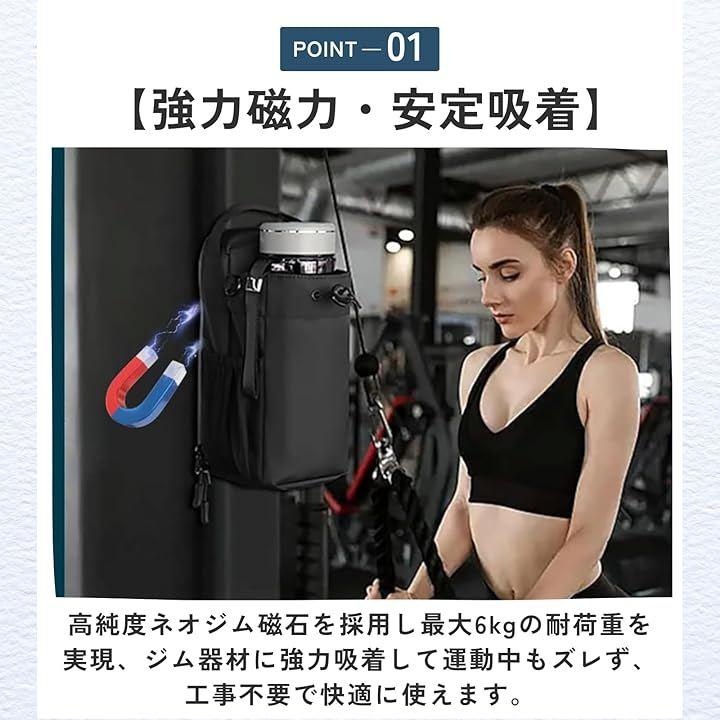 「強力磁力・安定吸着」高純度ネオジム磁石を採用し最大6kgの耐荷重を実現、ジム器材に強力吸着して運動中もズレず、工事不要で快適に使えます。