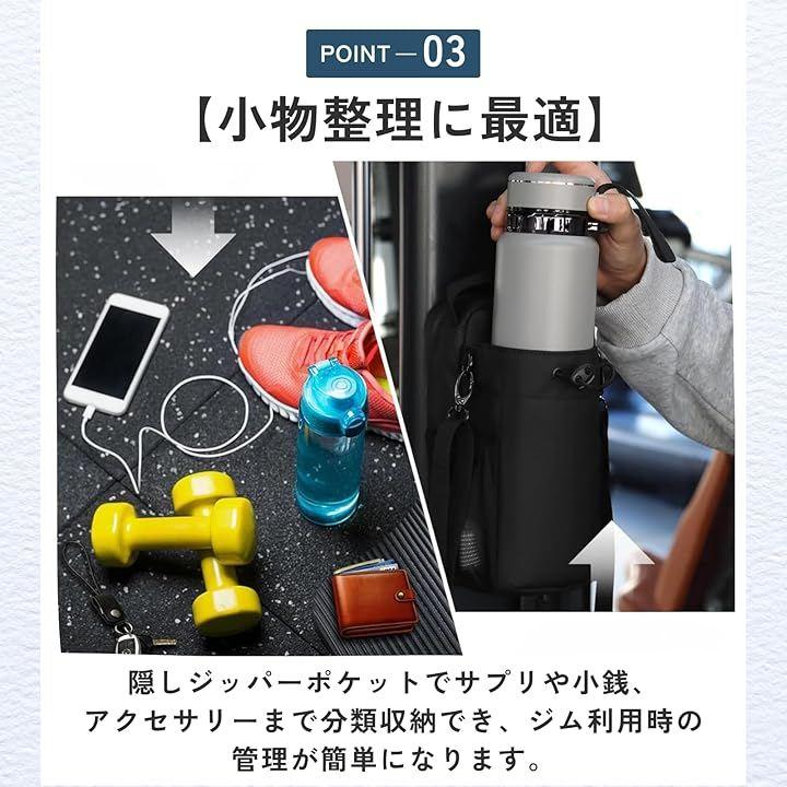 「小物整理に最適」隠しジッパーポケットでサプリや小銭、アクセサリーまで分類収納でき、ジム利用時の管理が簡単になります。