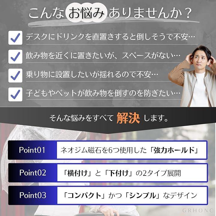 車内やオフィスでの飲み物の置き場所に困っていませんか?GRHONCのマグネット式ドリンクホルダーなら、車内はもちろん、デスクサイドや金属面であればどこでも簡単に設置できます。
