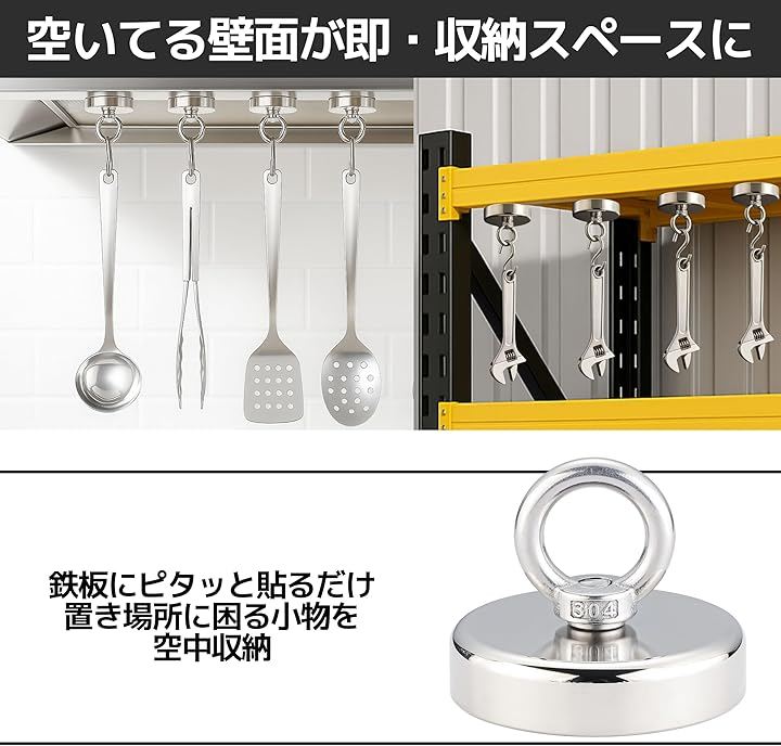 穴あけ不要で、ガレージ・倉庫・キッチンの“空いている面”を収納スペースへ。