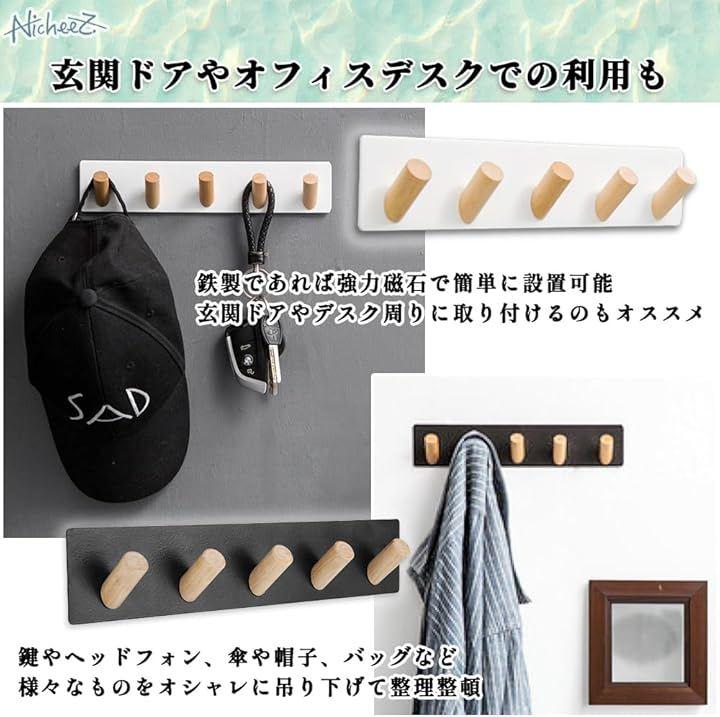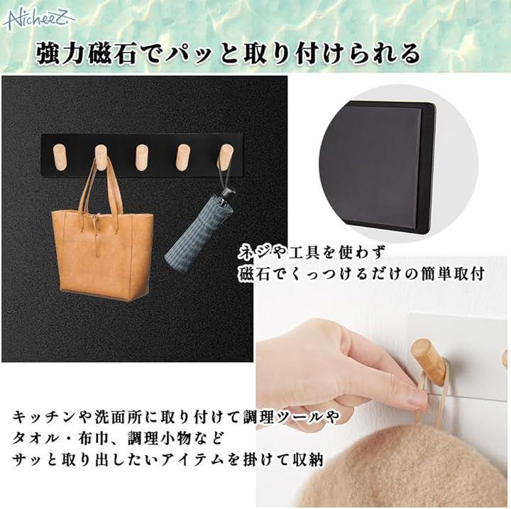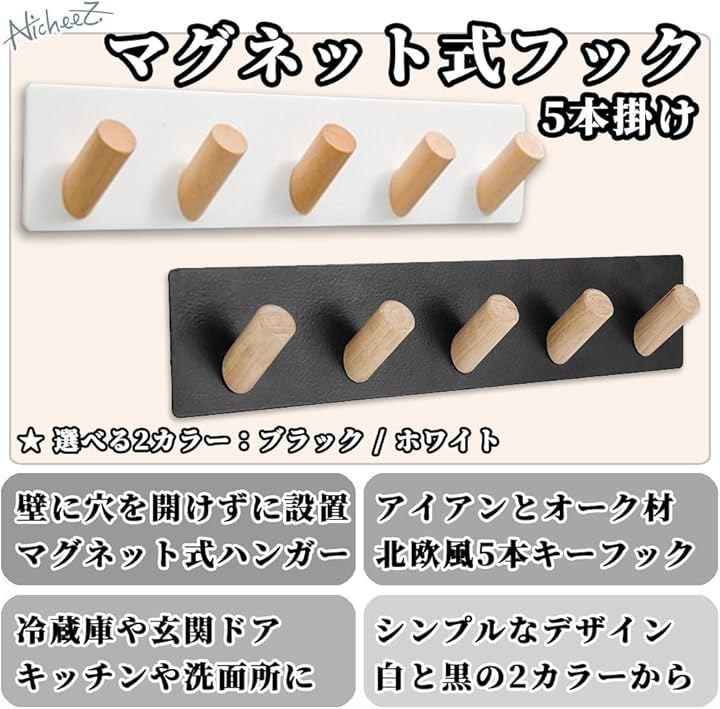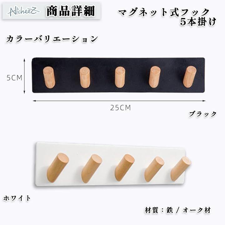 「商品内容」 マグネット式フック5本掛け 材質:鉄・オーク材 カラー:ブラック/ホワイト 5本サイズ:横/約25cm 縦/約5cm