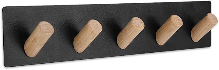 アイアンプレートとオーク材フックの組み合わせがオシャレな5本掛けのキーフック。