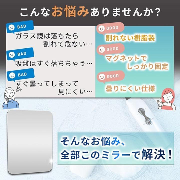 本製品は、高品質なアクリル樹脂を使用した「軽くて割れにくい」安心設計のミラーです。