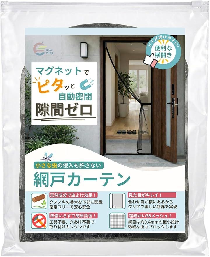 マグネットでピタッと自動で閉まる、便利な横開きタイプの網戸カーテンです。
